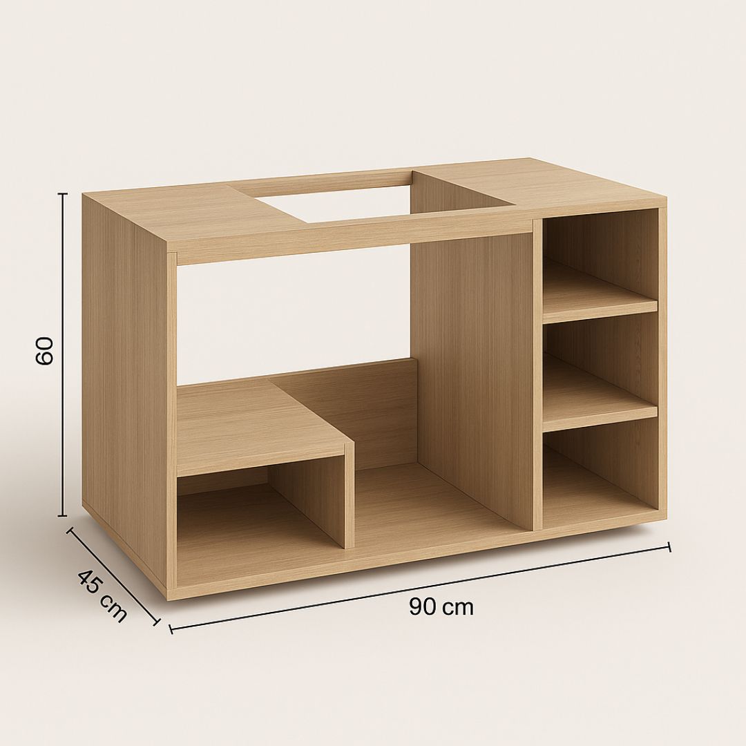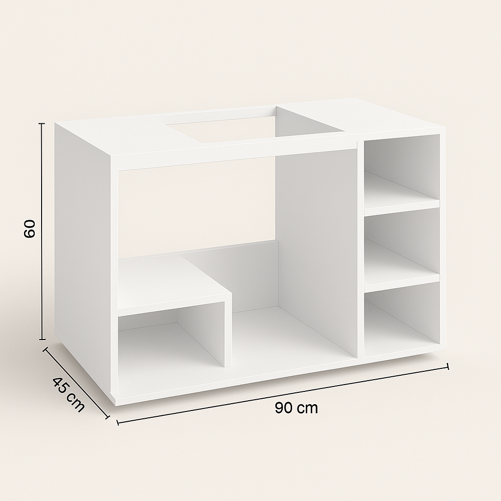 Com um visual clean e sofisticado, o Slim Lavabo foi projetado para se adaptar perfeitamente ao espaço sob a pia, criando um ambiente elegante sem comprometer a circulação. Seus módulos otimizados permitem organização prática de itens de higiene, toalhas, decorações e outros acessórios.