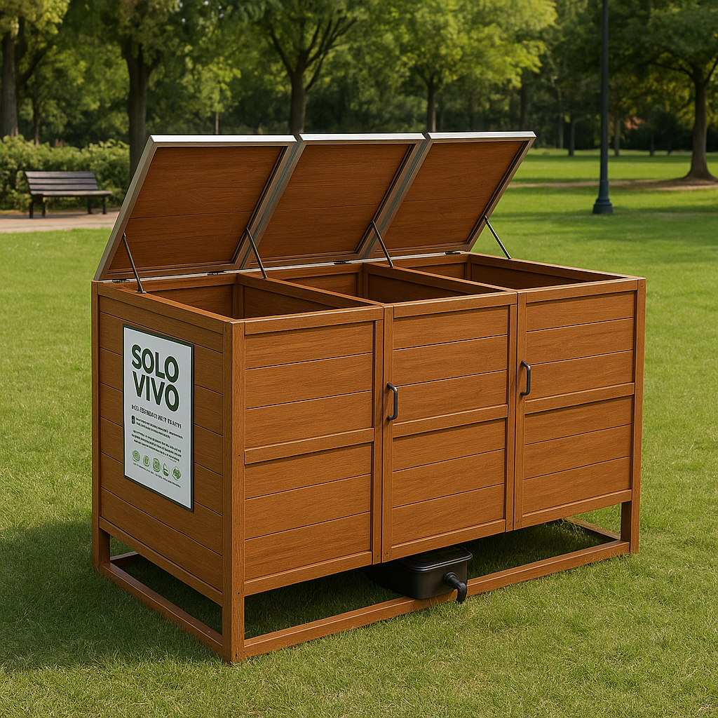 A Solo Vivo é uma composteira modular desenvolvida para transformar resíduos orgânicos em adubo de forma prática, limpa e totalmente ecológica. Projetada para praças, parques, escolas e áreas comunitárias, sua estrutura em Poliframe com reforço em alumínio garante alta durabilidade, resistência às intempéries e baixo custo de manutenção.