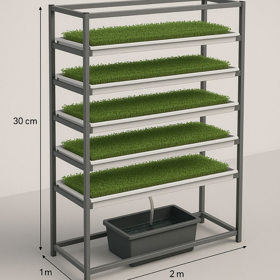 Com cinco níveis de cultivo e espaçamento otimizado de 30 cm entre as bandejas, o Broto Vertical permite o aproveitamento máximo da área, ideal para pequenos espaços, varandas, quintais, estufas ou projetos comerciais de microverdes.
