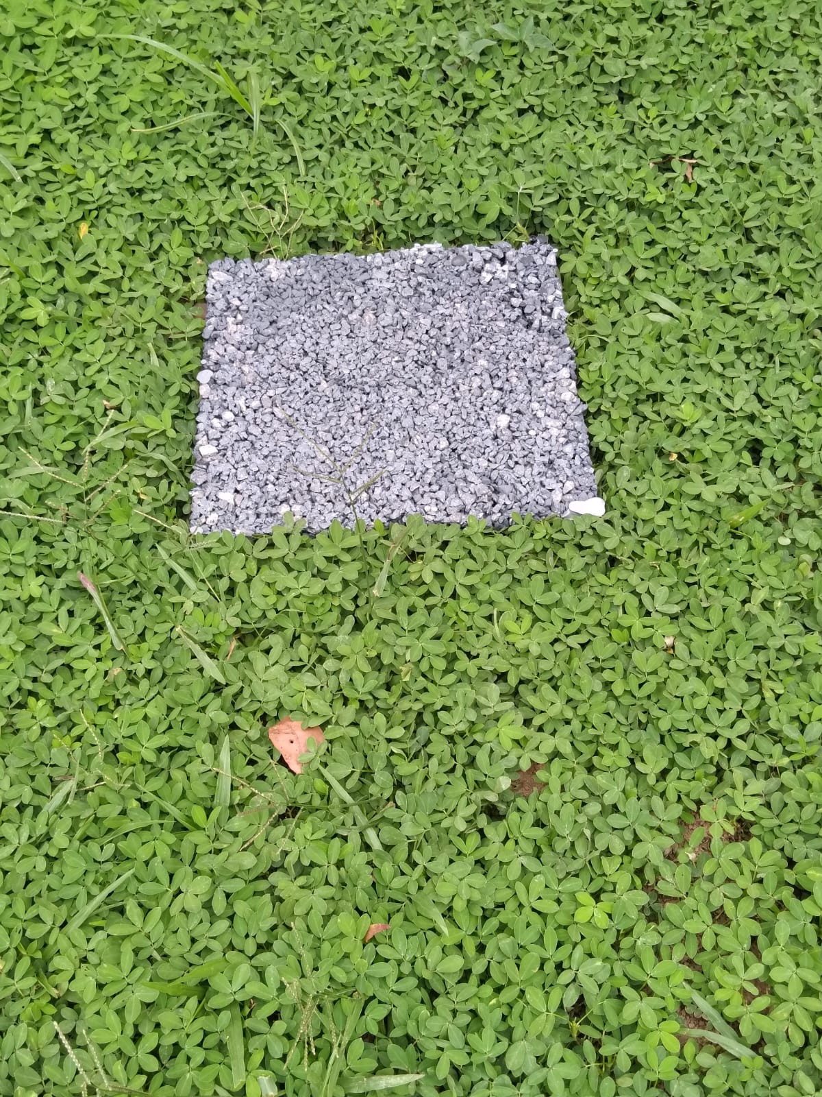 Piso drenante , feito com britas e coladas com o reparô , material derivado da reciclagem do isopor